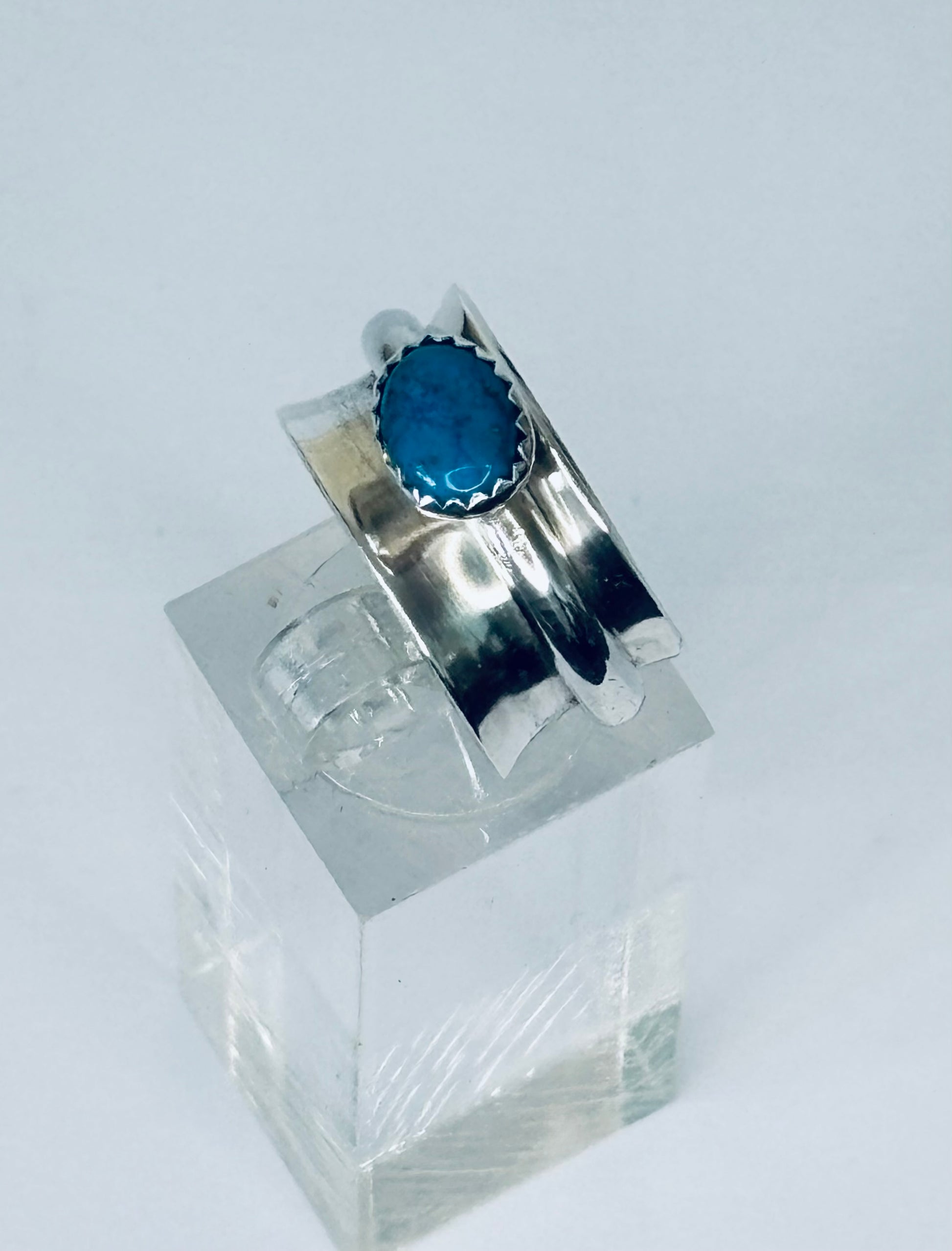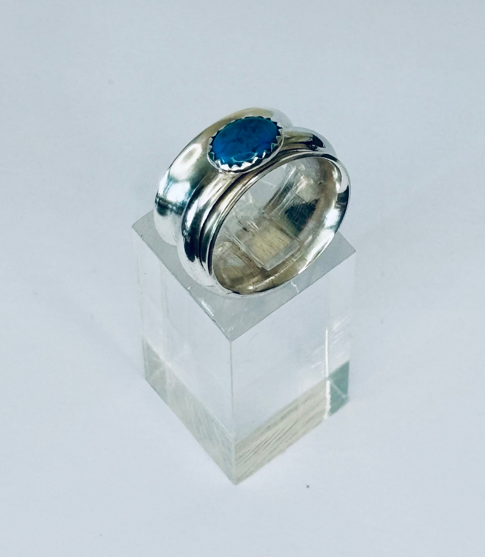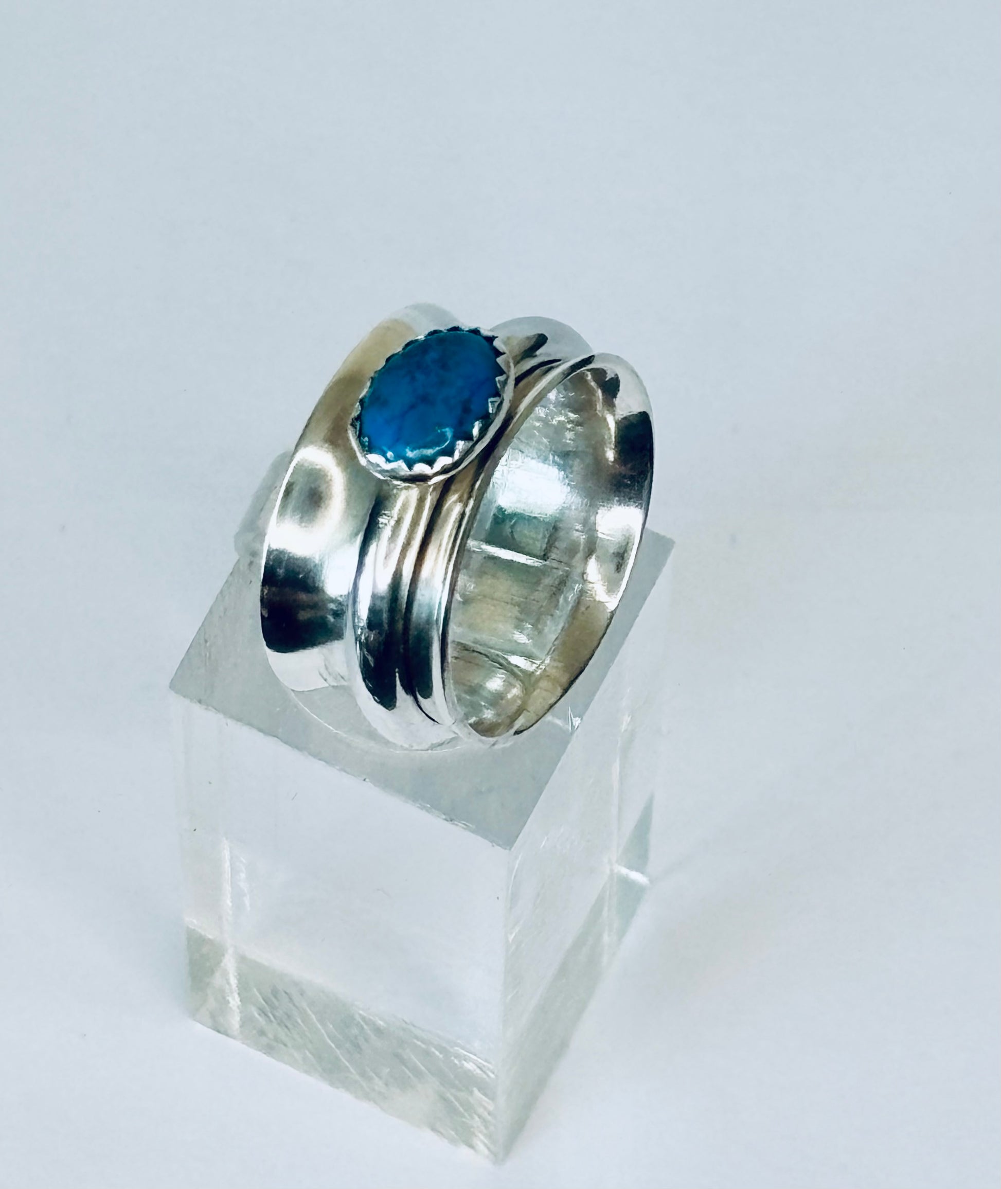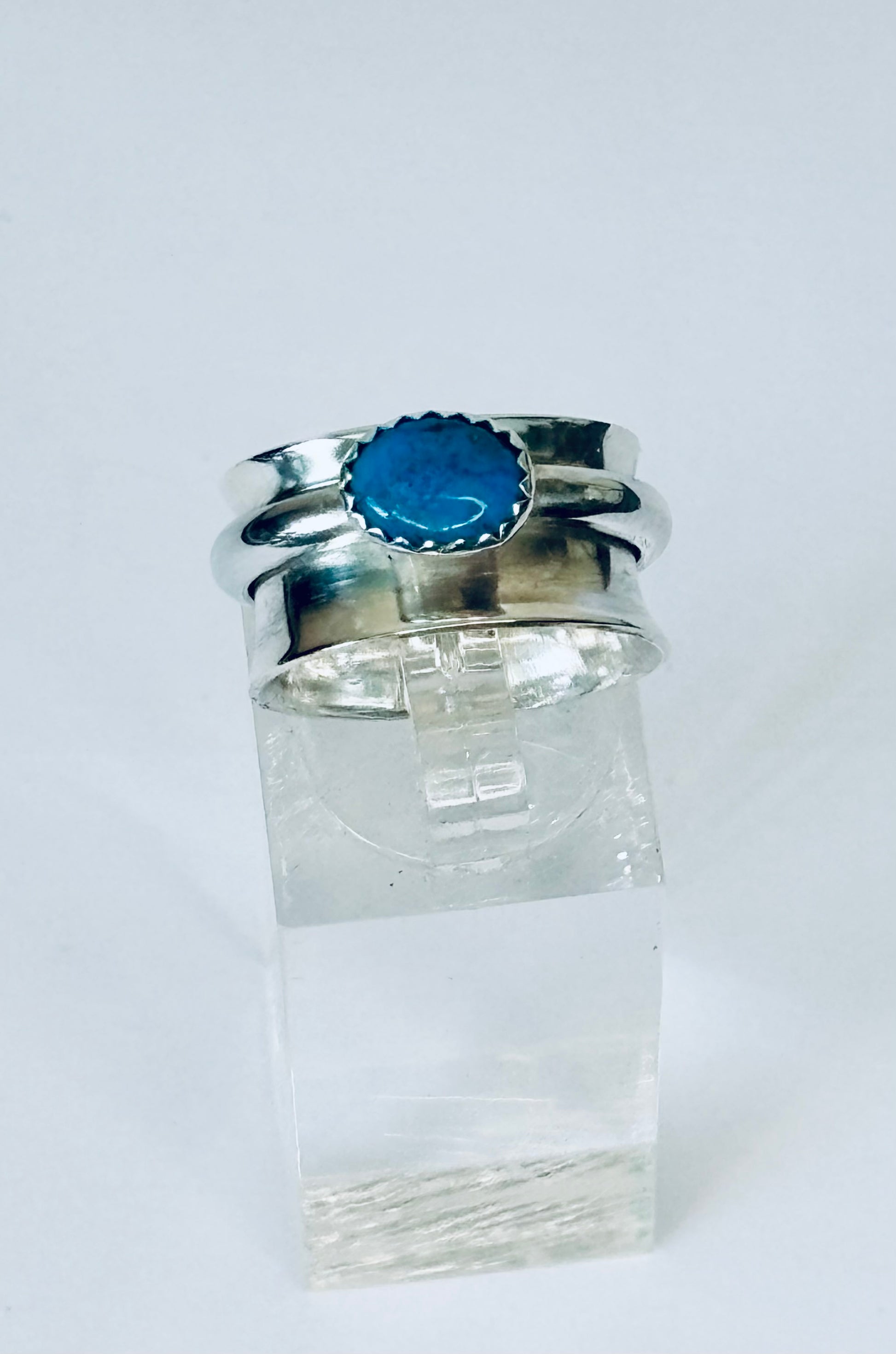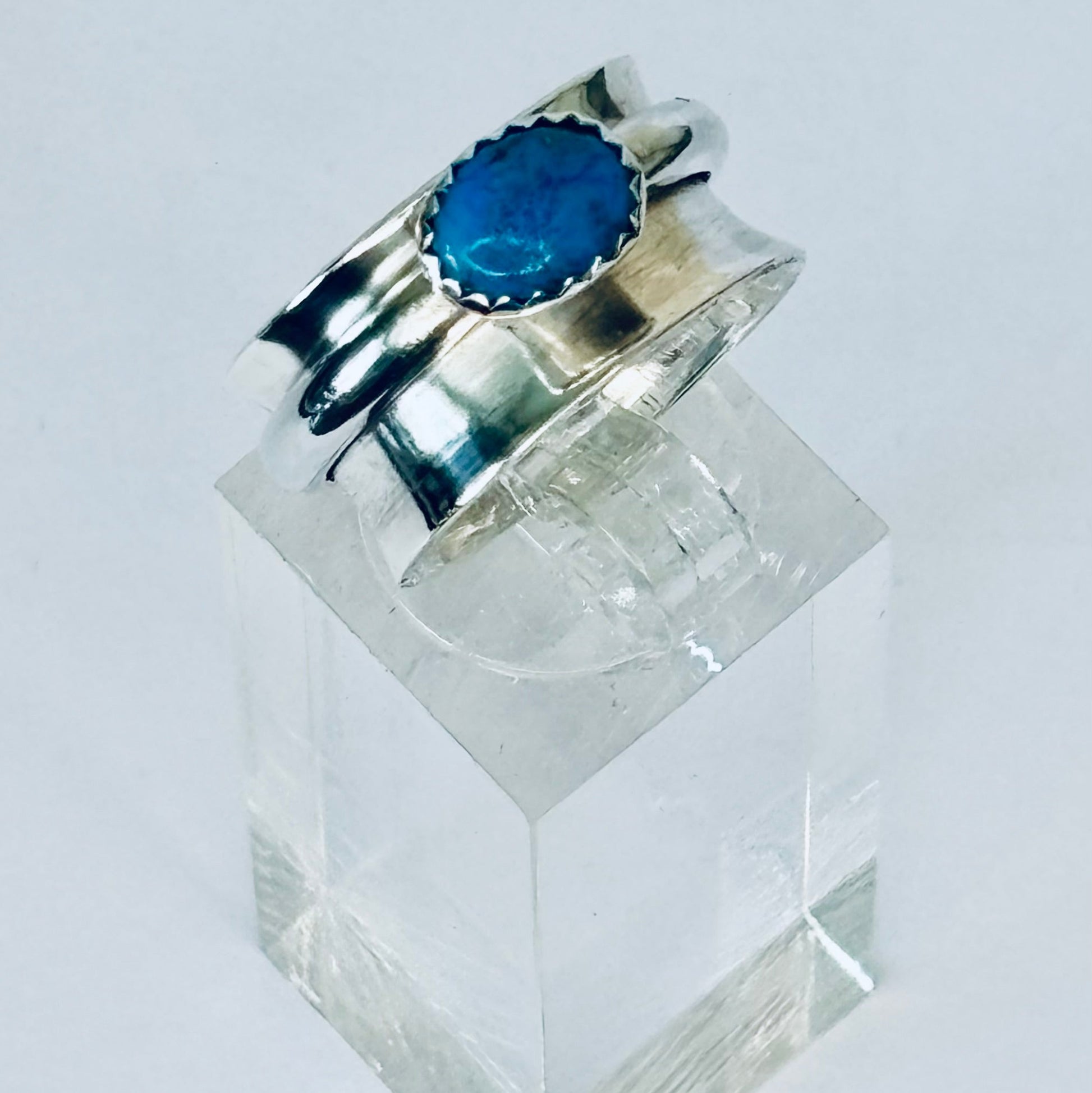 Add a splash of charm to your day with this playful sterling silver spinner ring, featuring a delicate blue cabochon that catches the eye. Handmade with care in size K, it offers a soothing spin to keep your fingers busy and your style effortlessly cool. Perfect for those who love a little fun and sparkle in their accessories!
