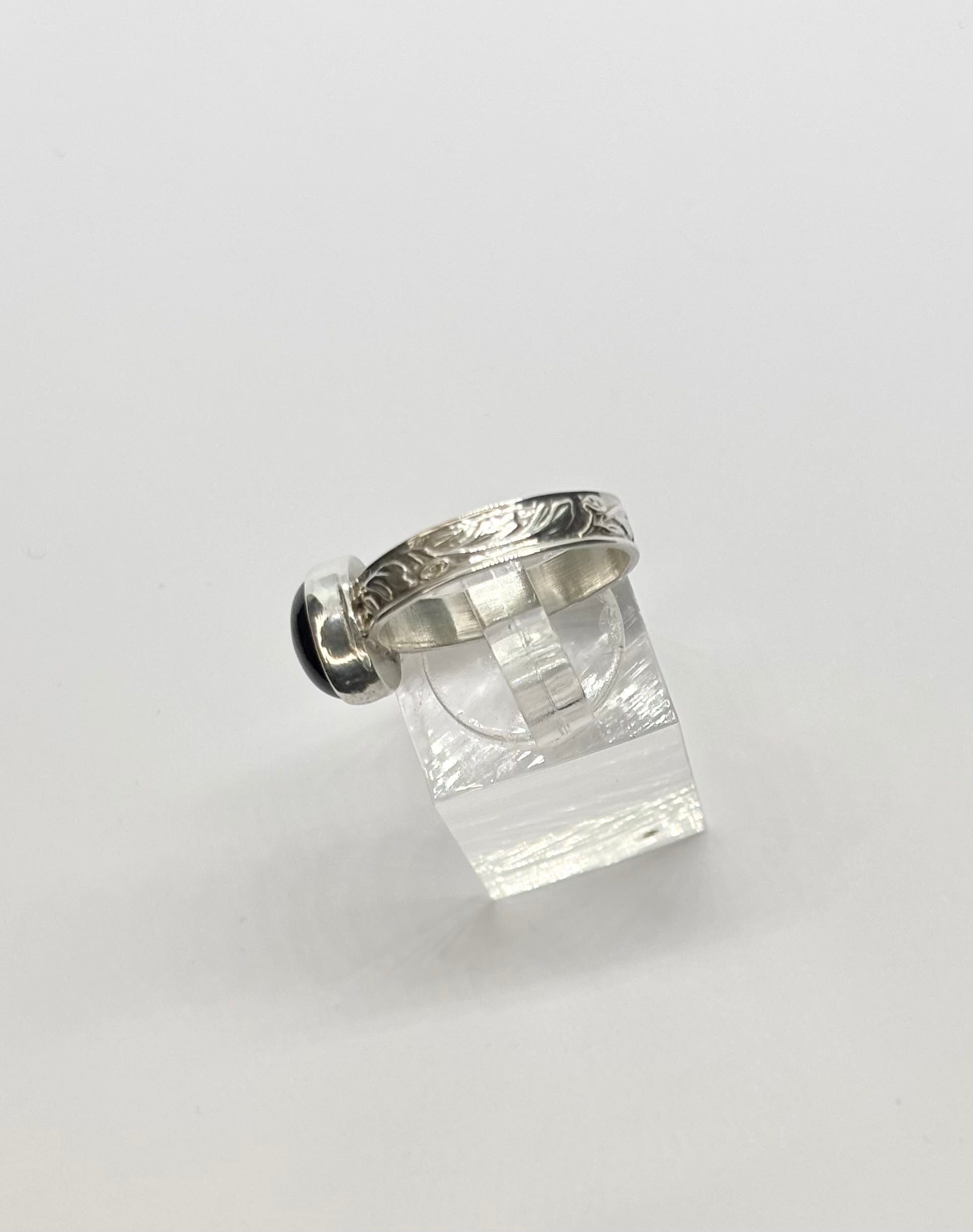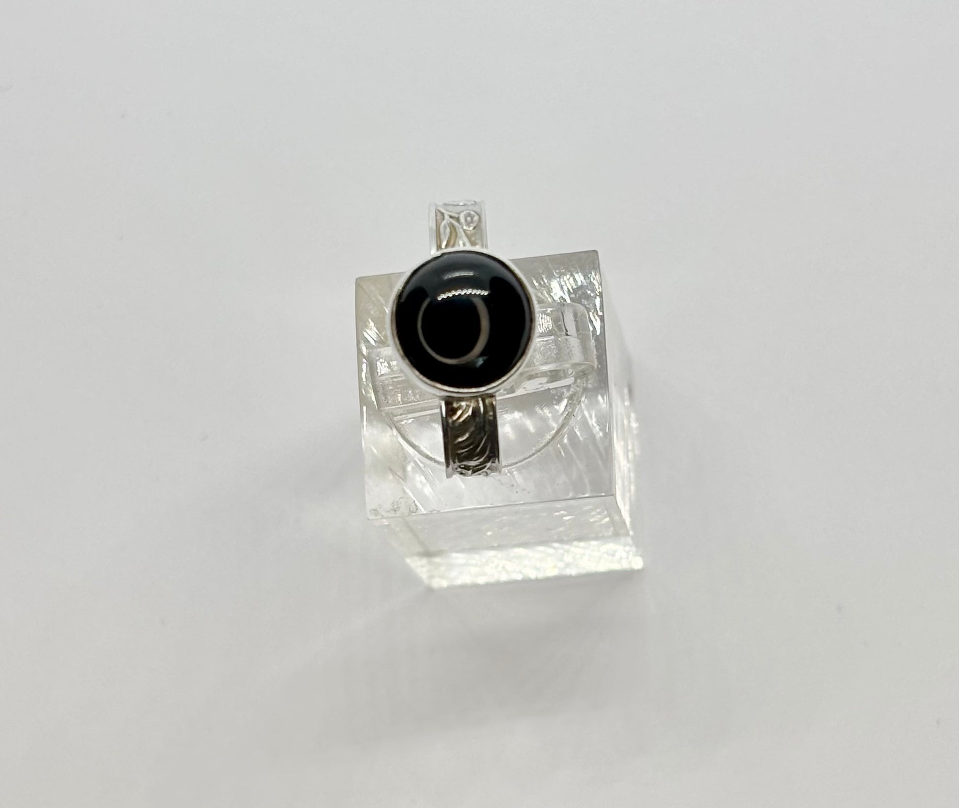 Add a touch of mystery and sparkle to your style with this sterling silver ring featuring a sleek onyx stone. The patterned band adds a fun twist, making it a perfect statement piece for any occasion. Sized at Q, it’s ready to charm your fingers with a playful edge.